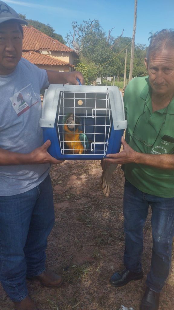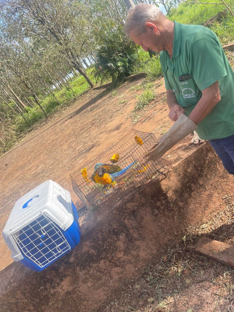 Com responsabilidade e sensibilidade, a moradora acionou apoio da secretaria de meio ambiente e agricultura, o médico veterinário Haroldo, que ajudou na captura segura do filhote, priorizando o bem-estar da ave e evitando qualquer tipo de estresse ou risco. Em seguida, o animal foi encaminhado à Polícia Ambiental de Fernandópolis, com o apoio do vereador Rafa da saúde, que acompanhou todo o procedimento para assegurar o destino correto da arara.