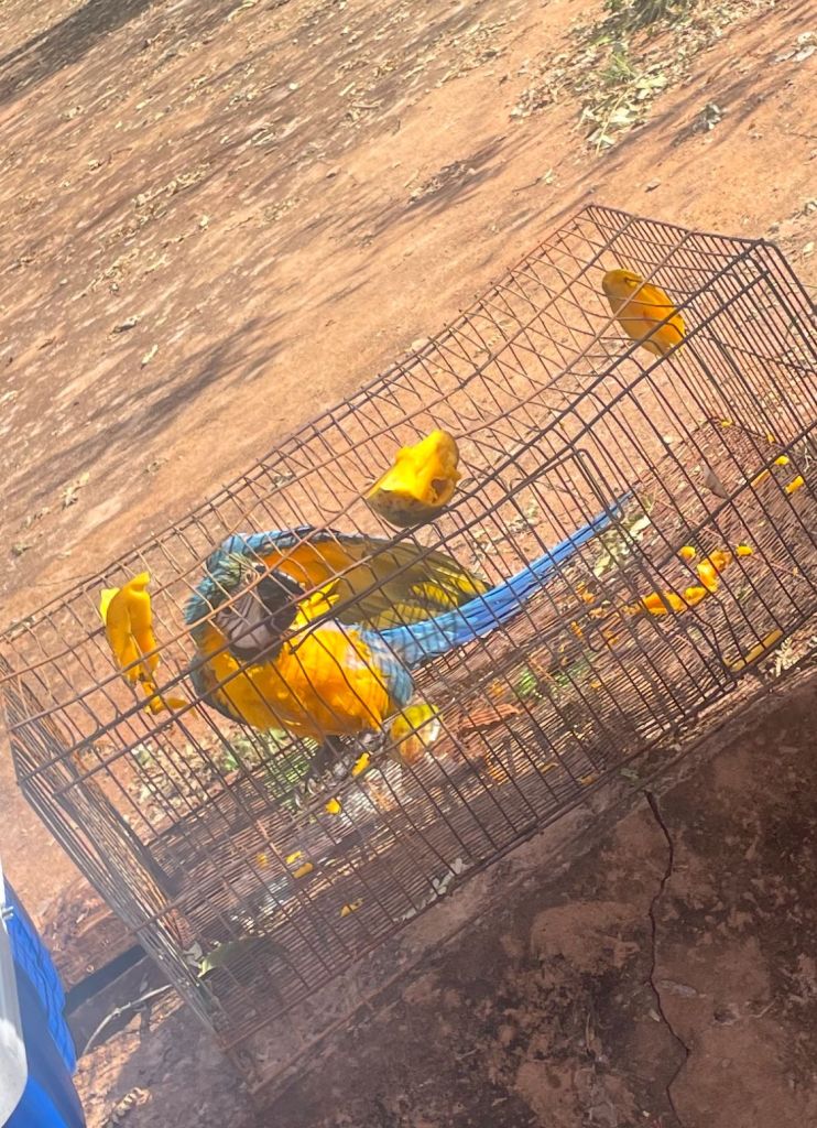 Após o forte vendaval acompanhado de chuva de granizo que atingiu o município de Fátima Paulista no dia 24 de novembro, LEILA uma moradora da zona rural encontrou um filhote de arara-canindé em situação de vulnerabilidade. O animal, apesar do susto, não apresentava ferimentos aparentes, mas necessitava de manejo adequado para garantir sua sobrevivência.